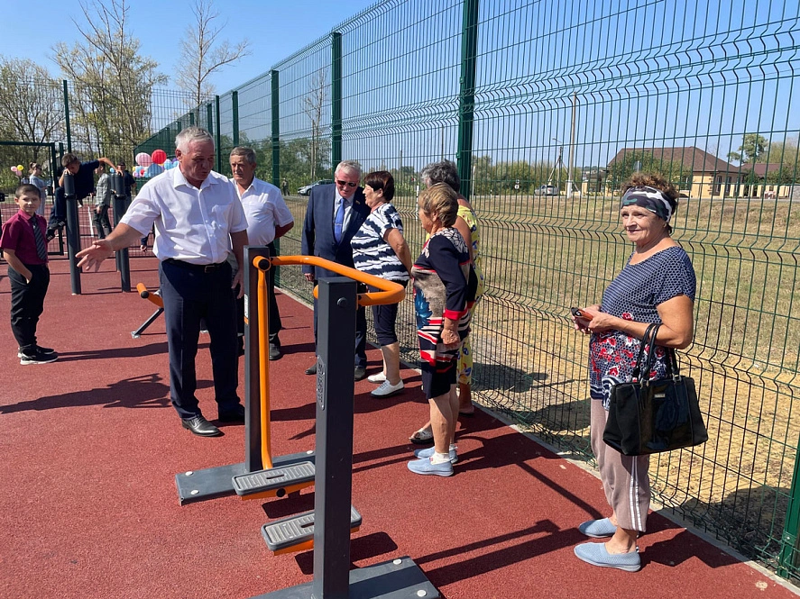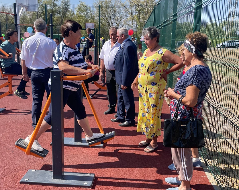 9 тренажёров, турники, брусья и зона отдыха разместились на 150 квадратных метров рядом с обновлённой игровой площадкой в селе Айдар Белгородской области.