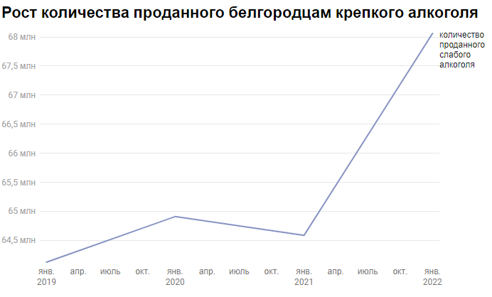Потребление крепкого алкоголя вот уже четыре года растёт. По данным ЕГАИС, в 2022 году этот показатель вырос до 14,8 млн литров. При этом в 2019 году объём проданного спиртного составил 11,9 млн литров, в 2020-м – 12,5 млн литров, в 2021-м – 13,2 млн литров.