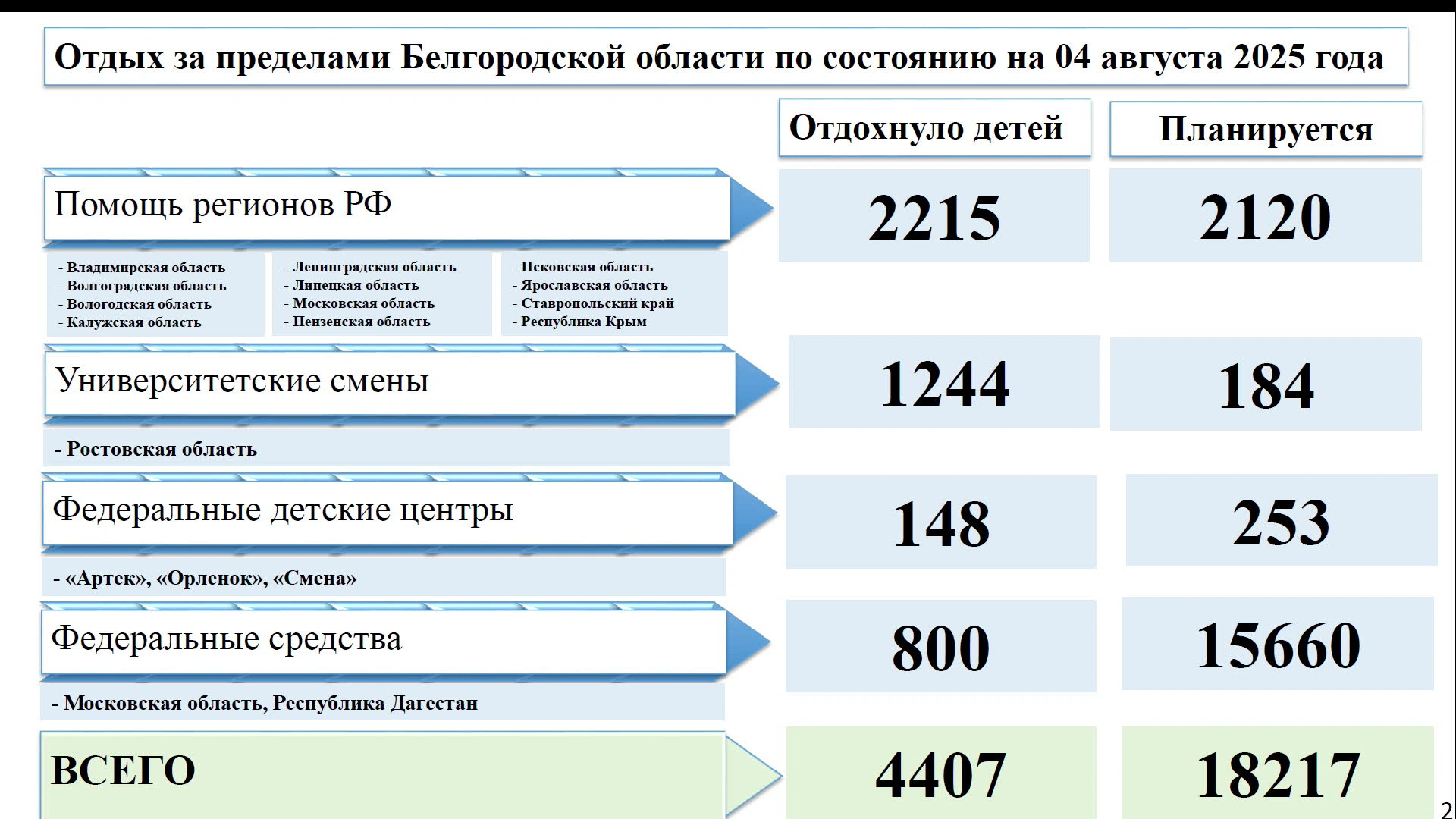 2,2 тыс. белгородских детей уже отдохнули в лагерях других регионов РФ