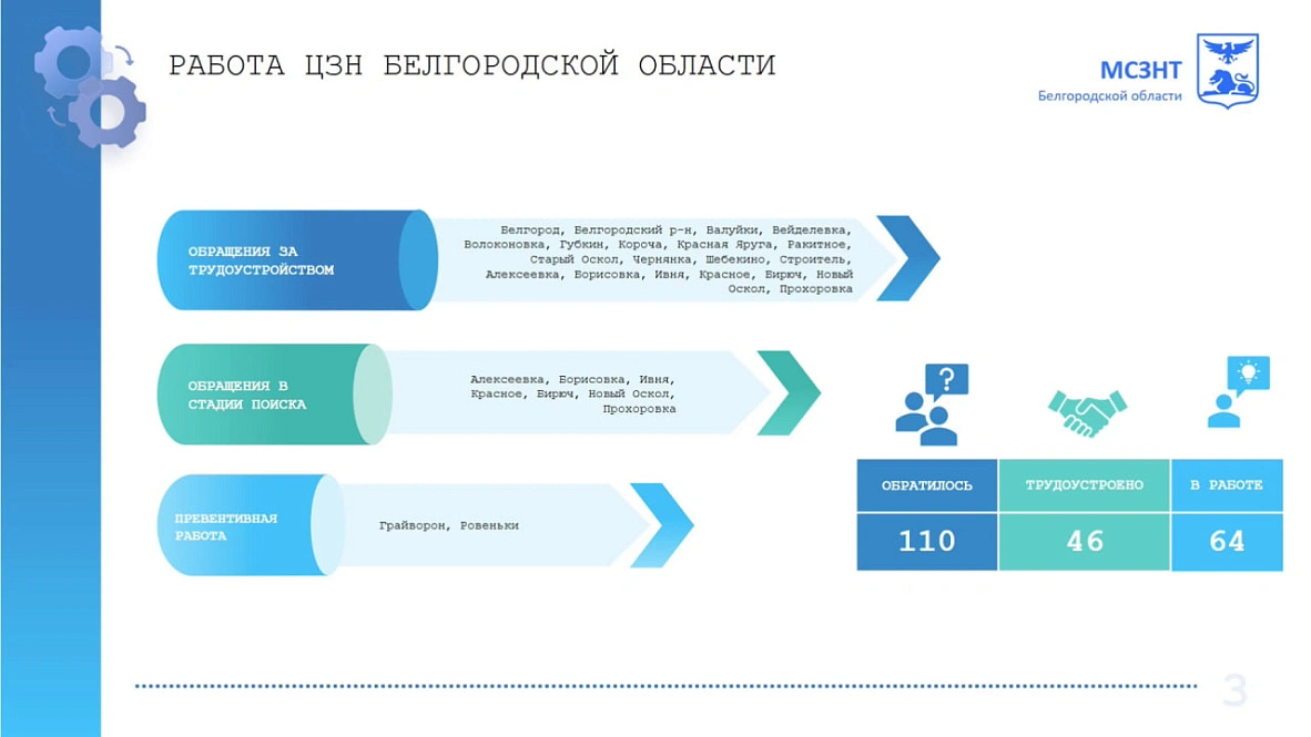 Через центр занятости за поиском работы обратились 110 участников СВО. Из них 46 уже трудоустроились, а 64 ещё в процессе подбора. Кроме того, помогают выбрать подходящее место работы и кураторы от фонда «Защитники Отечества».