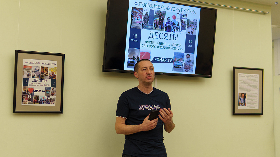 Десять – потому что сетевому изданию Fonar.tv, где работает Антон Вергун, исполнилось 10 лет. На выставке представлены работы Антона с 2015 по 2025 годы – документ времени, сто репортажных снимков – по десять кадров на каждый год.