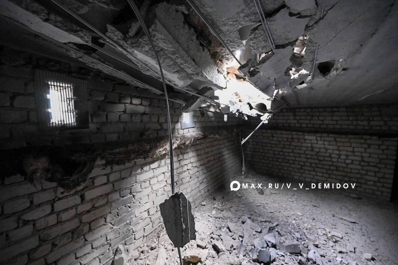 На Харьковской горе в Белгороде аварийные бригады ликвидируют последствия ночного ракетного удара. Снаряд повредил технический этаж и пробил кровлю многоэтажки.