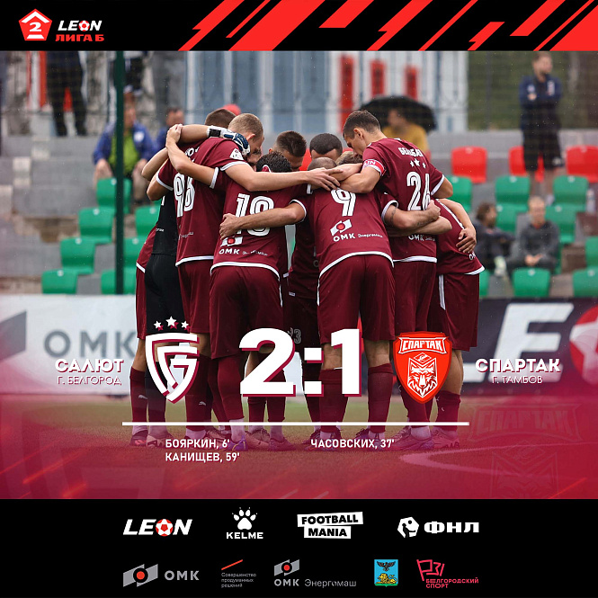 Ещё совсем недавно Тамбов лелеял большой футбол: вышел в Премьер-лигу, арендовал бесхозный саранский стадион чемпионата мира, бились за сохранение места в элите. Но недолго музыка играла: футбольные российские власти не захотели признавать устаревший «родной» стадион, финансы запели романсы – и в итоге «волки не товарищи» просыпались во вторую лигу Б. К нам. Победили бы в Старом Осколе – поднялись бы выше хозяев при равенстве очков. Белгородцам пришлось нелегко: сражаться пришлось не с подмосковными юношами, а с командой, где дирижёр (Дмитрий Соловьев) в самом расцвете сил – 26 лет, вратарь Александр Баженов скоро отметит тридцатилетний юбилей, а лидер атаки Андрей Часовских и вовсе находится в возрасте Христа. Это трио и рулило: первый раздавал ювелирные пасы, второй пару раз выручил в аховой ситуации, а третий забил и за час до финального свистка сделал счёт 1:1. «Волки» озверели, а «пиротехники» со скрипом вернули себе инициативу и забили победный гол. Беспроигрышная серия «Салюта» близка к юбилею: шесть побед, три ничьих…
