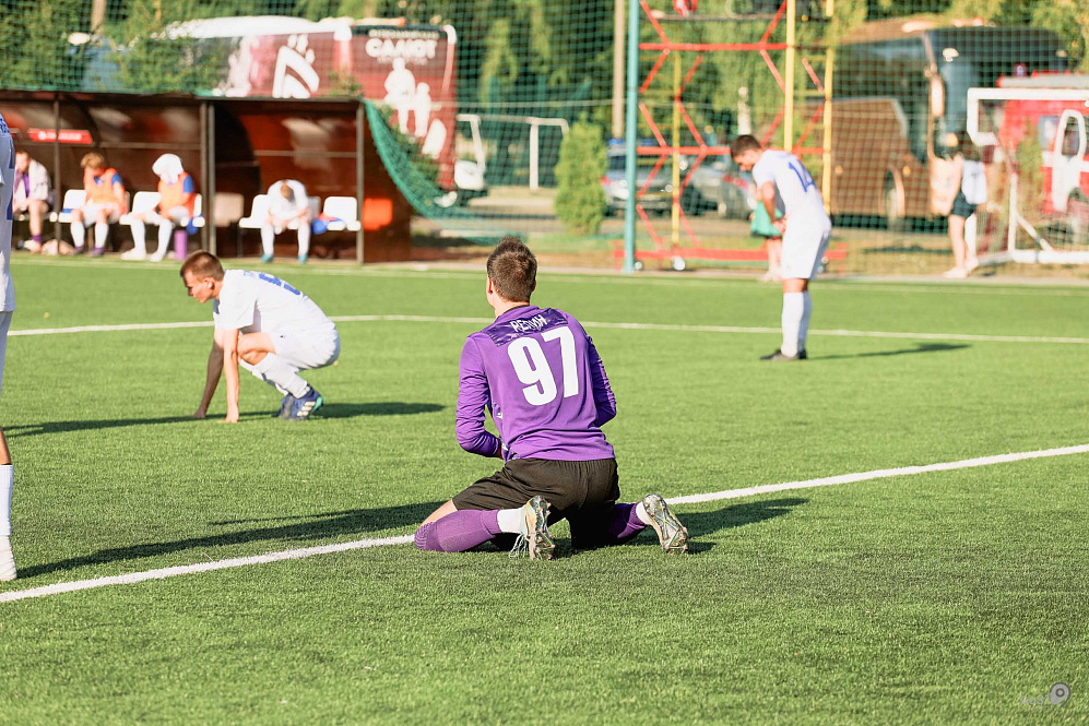 Очки в матче 5-й и 15-й команд группы нужнее были аутсайдеру, на финишной прямой борющемуся за сохранение звания профессионалов. Салютовцы же цели имели более комфортные: не проиграть 15-й раз подряд, а желательно – порадовать своих самых верных болельщиков крупной победой. Легко открыв счёт (свой юбилейный 10-й гол в сезоне записал на счёт Бояркин), наши так же легко позволили его сравнять. Мацак накрутил наших защитников и катнул мяч в нижний угол. Чуть было не получил «Салют» и гол в раздевалку: после удара Волкова, угодившего в штангу с острого угла. Равенство длилось до 73-й минуты, но тут до предела замотанные жарой и взвинченным хозяевами темпом вратарь и защитник грубо ошиблись, и несколько минут назад вышедший на замену 17-летний Гагуа опять же с острого угла закатил мяч в пустые ворота. После этого победного гола оборона визитёров рухнула и за дюжину минут пропустила ещё четырежды (!). Хет-трик Николая Бояркина сделал его главным бомбардиром зоны с 12-ю мячами. Браво!
