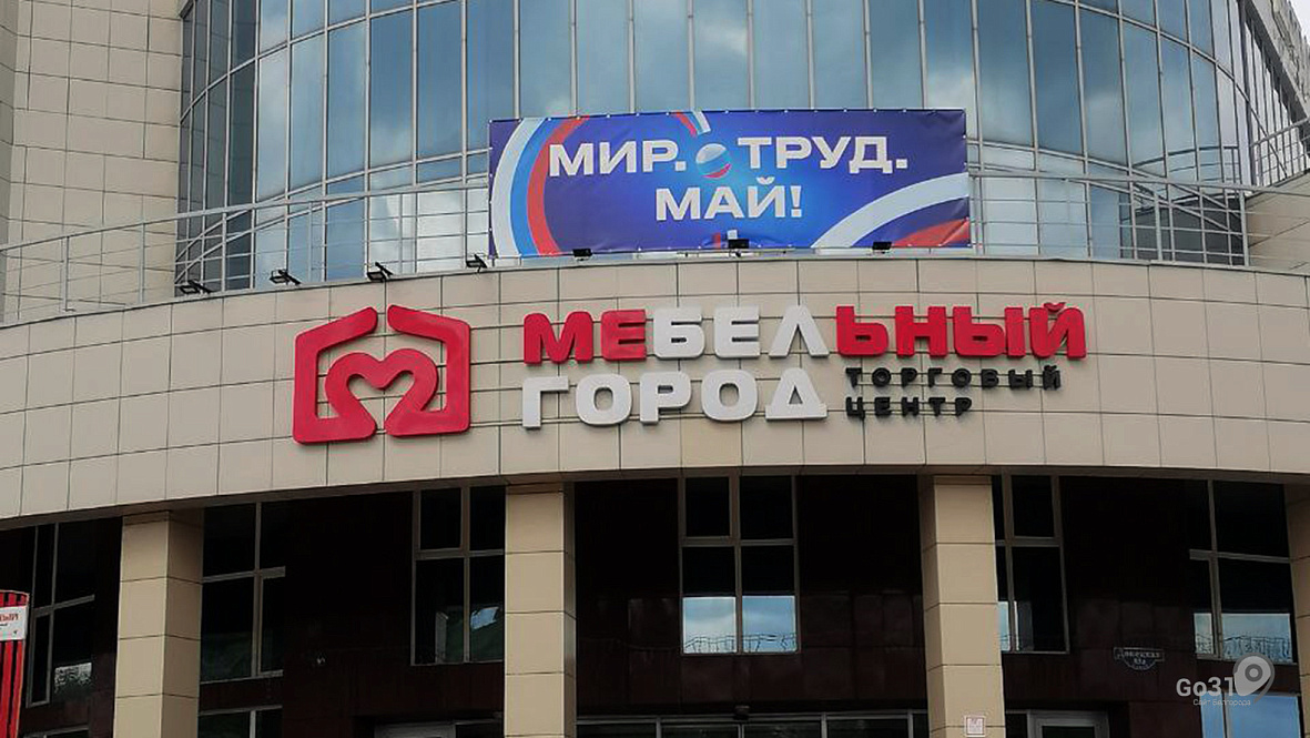 Сегодня, 9 мая, телеграм-канал «Белгород №1. Люди» выложил снимок торгового центра «Мебельный город» в Белгороде. После обеда оформление ТЦ изменилось.